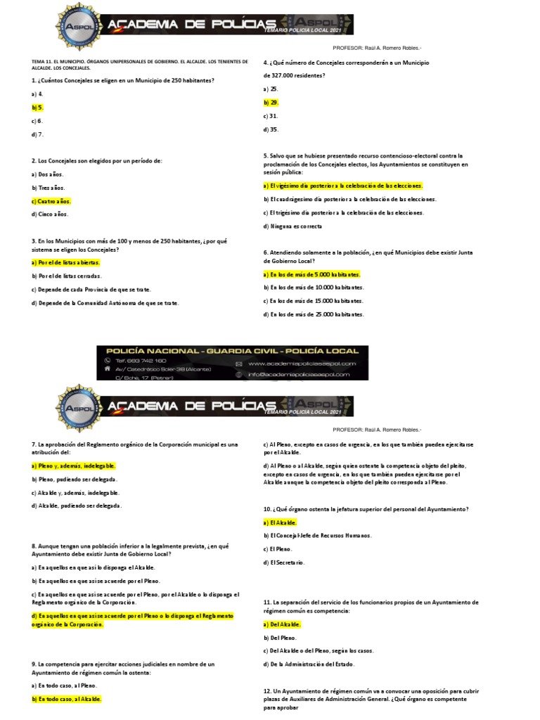 12. Un Ayuntamiento de régimen común va a convocar una oposición para cubrir