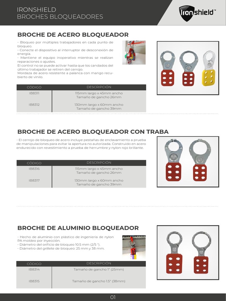 - Diámetro del grillete de bloqueo: 25 mm y 38 mm.