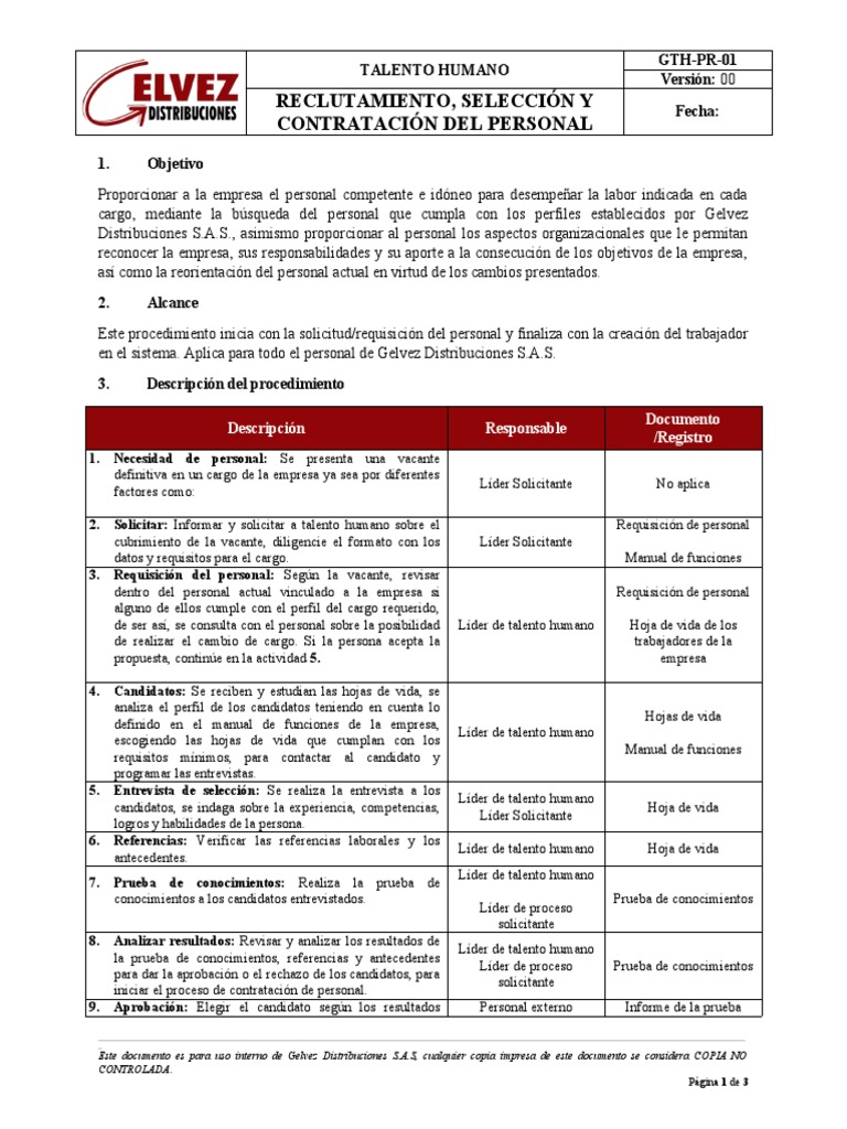 en el sistema. Aplica para todo el personal de Gelvez Distribuciones S.A.S.
