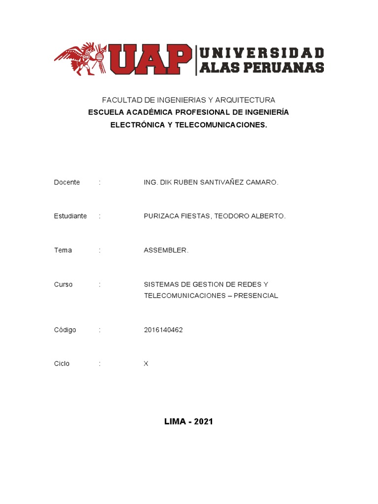 Mendoza, O. (2021). Lenguaje Ensamblador. Recuperado el 29 de Abril del 2021.