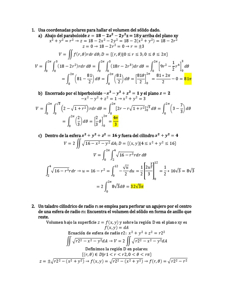 1. Usa coordenadas polares para hallar el volumen del sólido dado.