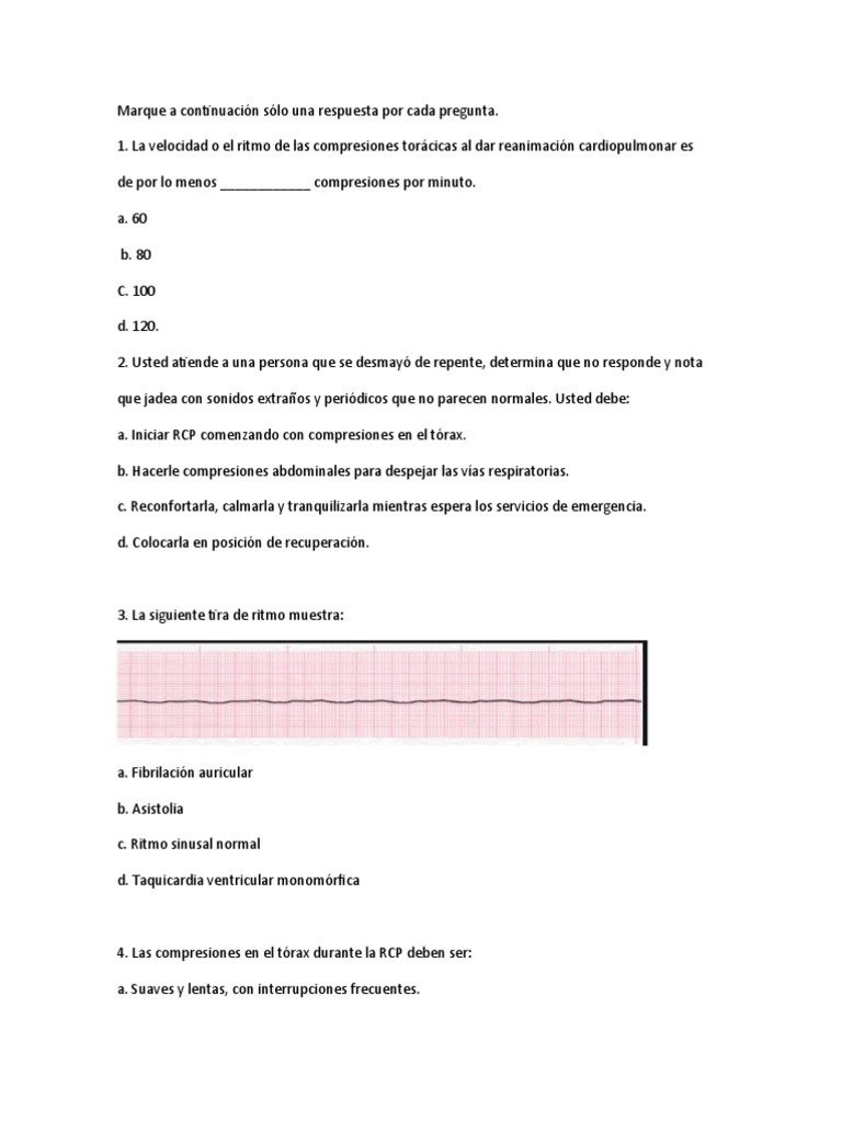 1. La velocidad o el ritmo de las compresiones torácicas al dar reanimación cardiopulmonar es