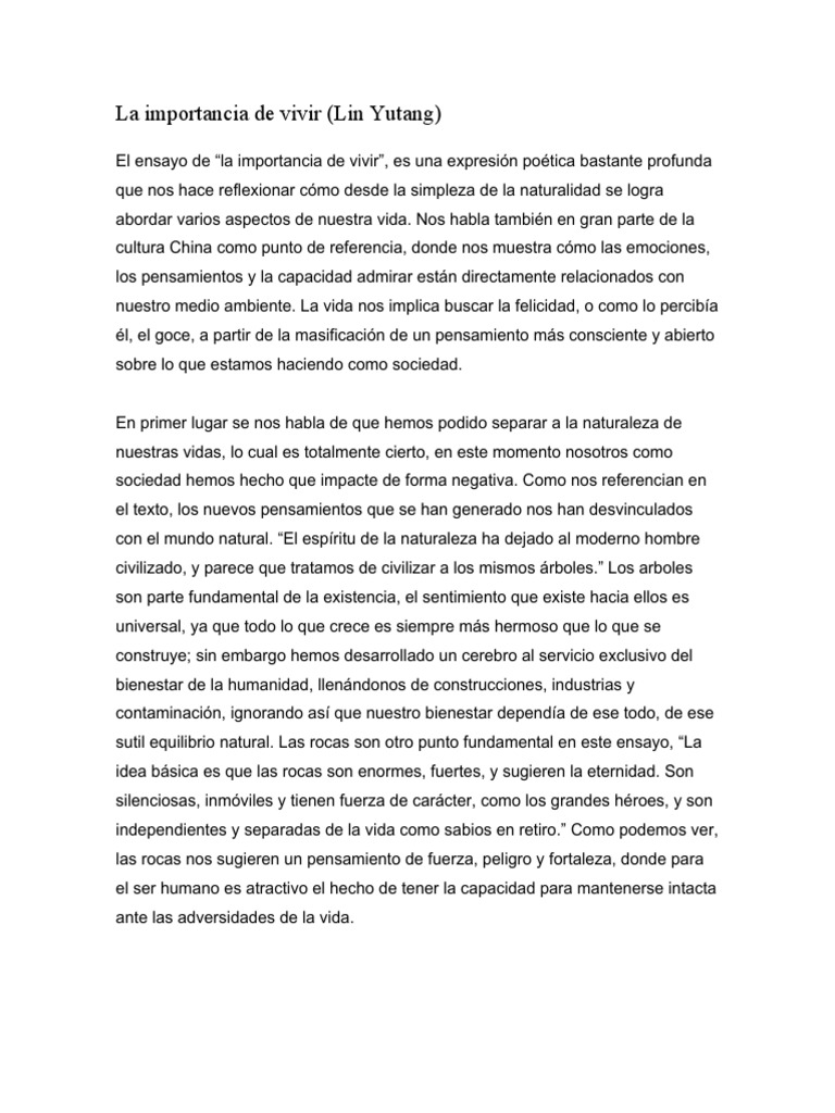 El ensayo de “la importancia de vivir”, es una expresión poética bastante profunda