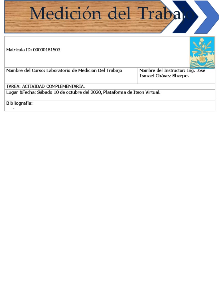 Nombre del Curso: Laboratorio de Medición Del Trabajo Nombre del Instructor: Ing. José