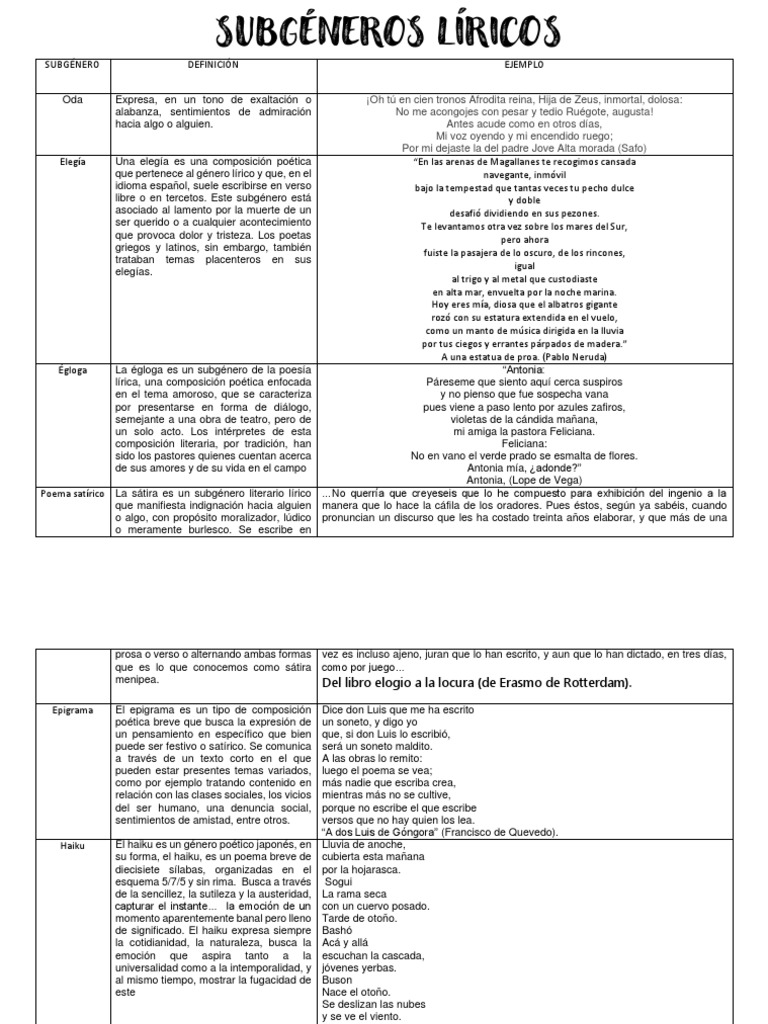 SUBGÉNEROS LÍRICOS