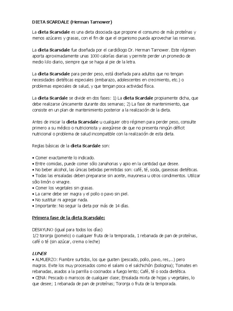 La dieta Scarsdale fue diseñada por el cardiólogo Dr. Herman Tarnower. Este régimen