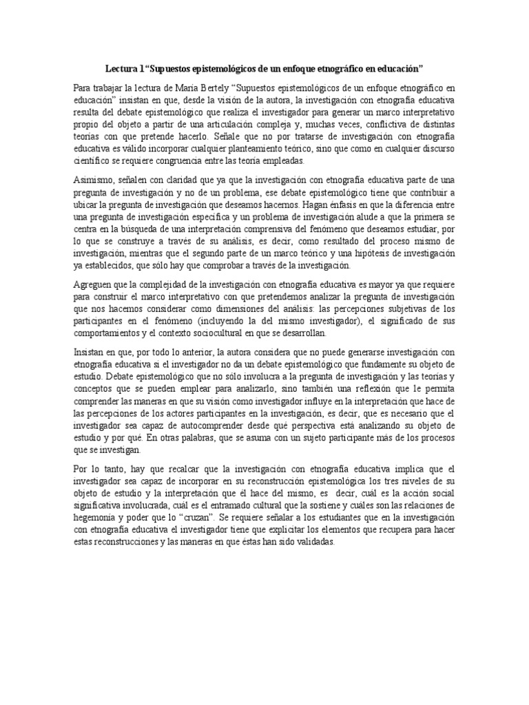 Lectura 1“Supuestos epistemológicos de un enfoque etnográfico en educación”