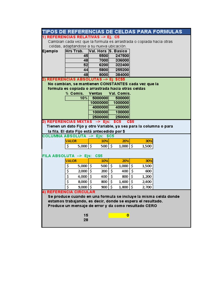 TIPOS DE REFERENCIAS DE CELDAS PARA FORMULAS