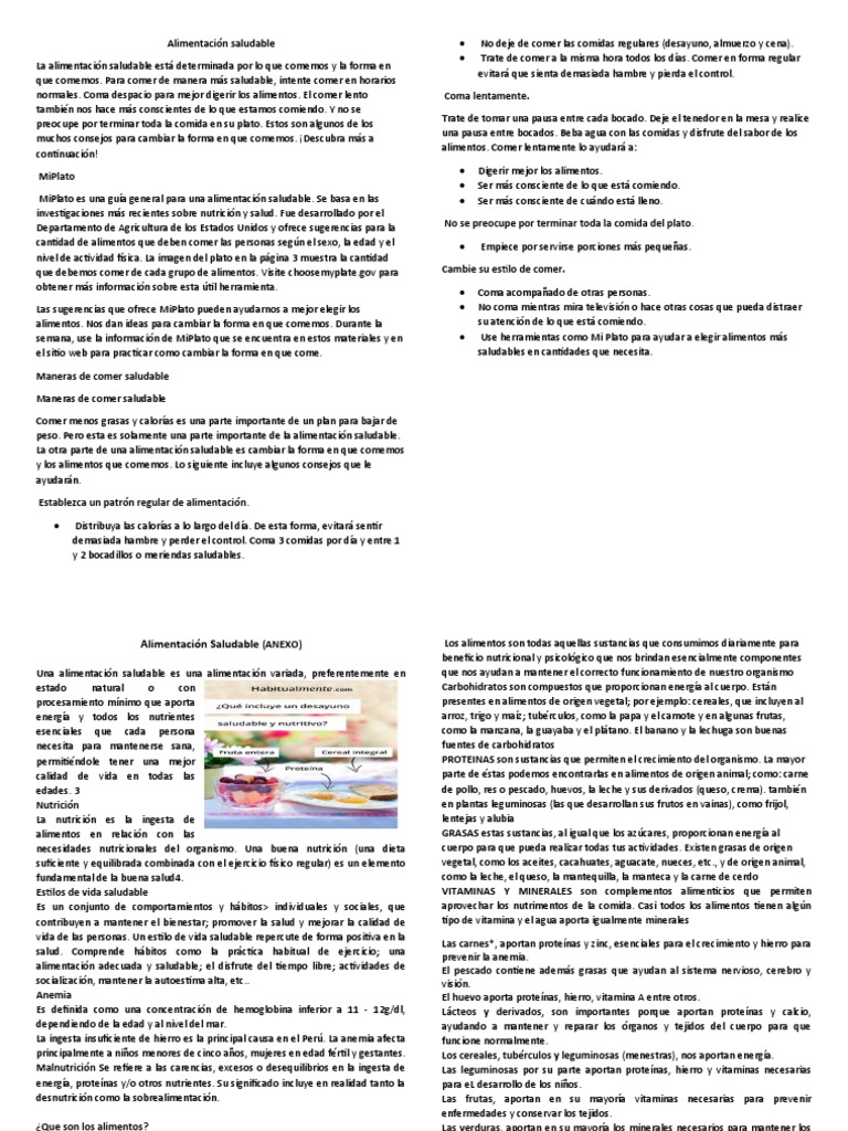 Alimentación Saludable (ANEXO) Los alimentos son todas aquellas sustancias que consumimos diariamente para