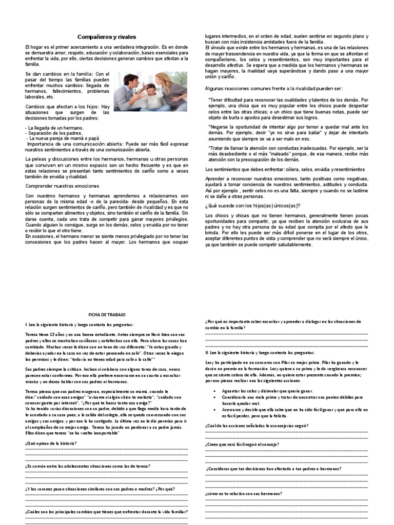 familia. desarrollo afectivo. Se espera que a medida que los hermanos y hermanas se