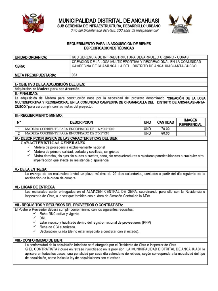 MULTIDEPORTIVA Y RECREACIONAL EN LA COMUNIDAD CAMPESINA DE CHAMANCALLA DEL DISTRITO DE ANCAHUASI-ANTA-