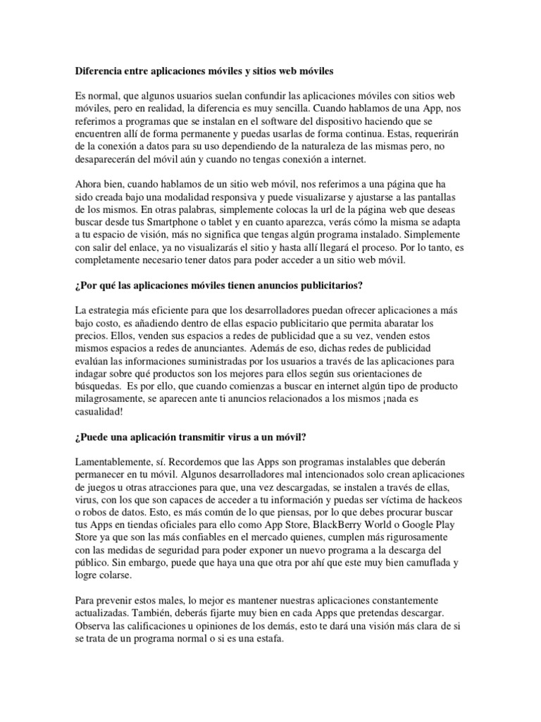 móviles, pero en realidad, la diferencia es muy sencilla. Cuando hablamos de una App, nos