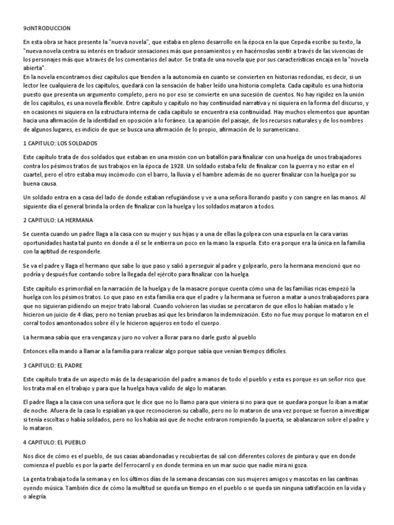 En conclusión, es una novela basada en un hecho histórico, la matanza de los peones bananeros en huelga, realmente efectuada por