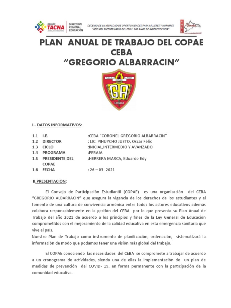 PLAN ANUAL DE TRABAJO DEL COPAE