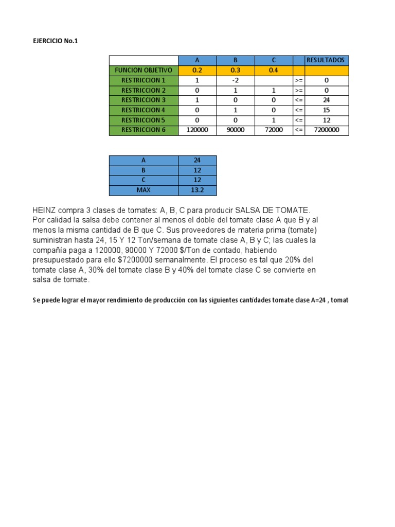 HEINZ compra 3 clases de tomates: A, B, C para producir SALSA DE TOMATE.