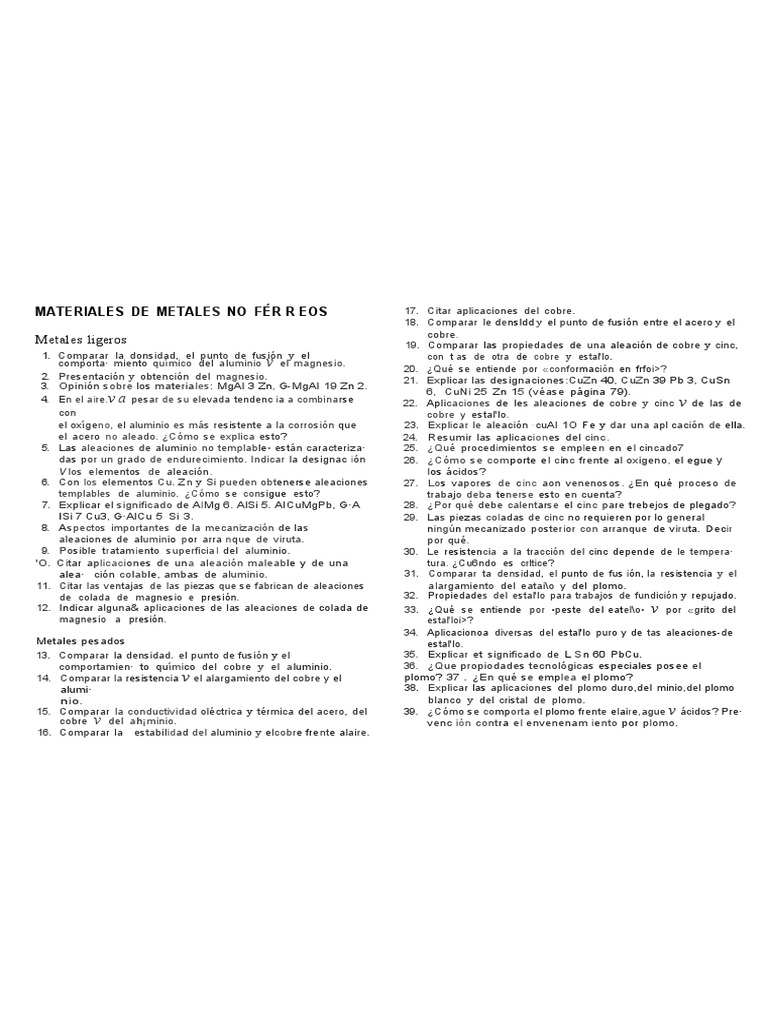 7. Explicar el significado de AIMg 6. AlSi 5. AICuMgPb, G·A 28. ¿Por qué debe calentarse el cinc pare trebejos de plegado?
