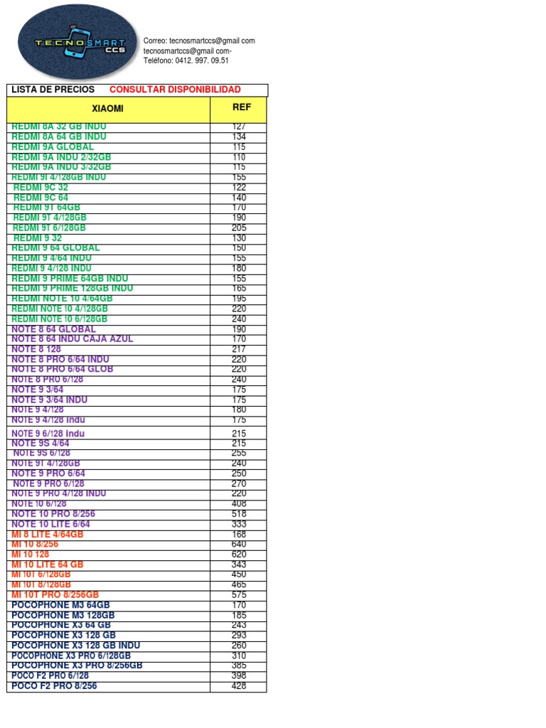 LISTA DE PRECIOS CONSULTAR DISPONIBILIDAD