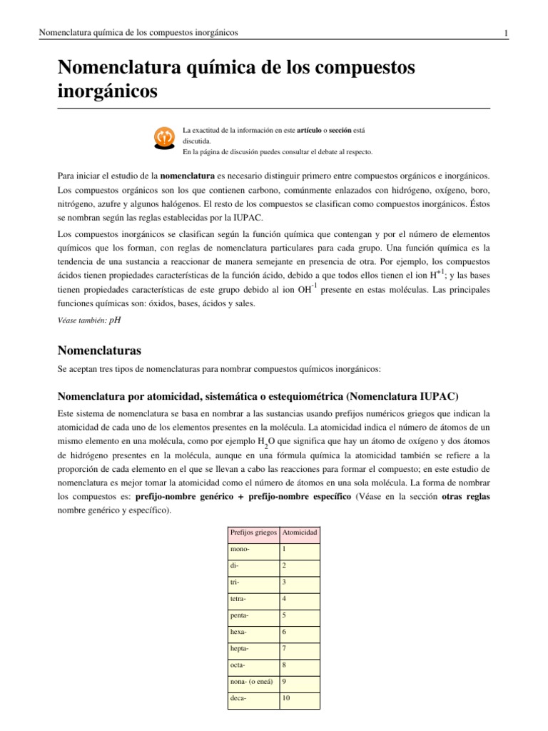 Nomenclatura de compuestos inorgánicos