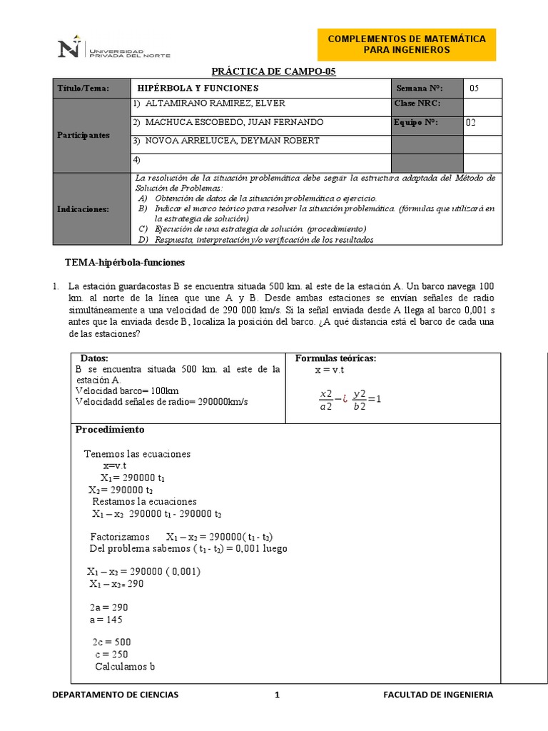 Título/Tema: HIPÉRBOLA Y FUNCIONES Semana N°: 05