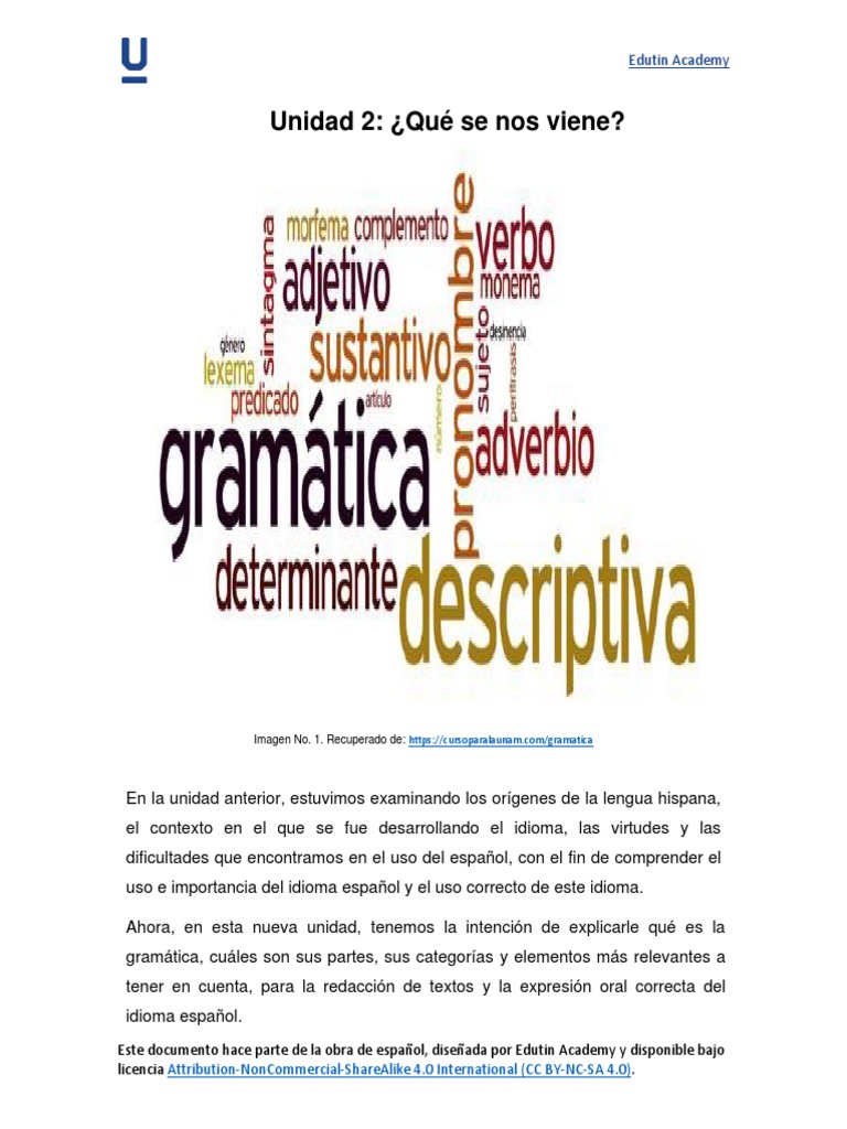 Este documento hace parte de la obra de español, diseñada por Edutin Academy y disponible bajo
