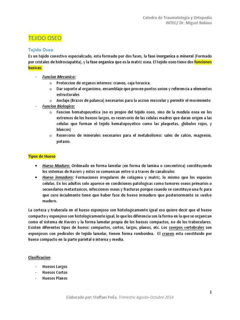 por cristales de hidroxiapatita), y la fase organica que es la matriz osea. El tejido oseo tiene dos funciones