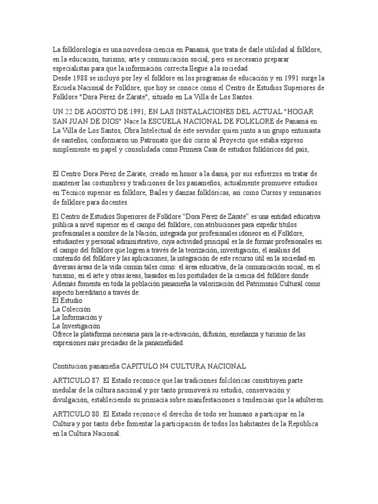Contitucion panameña CAPITULO N4 CULTURA NACIONAL
