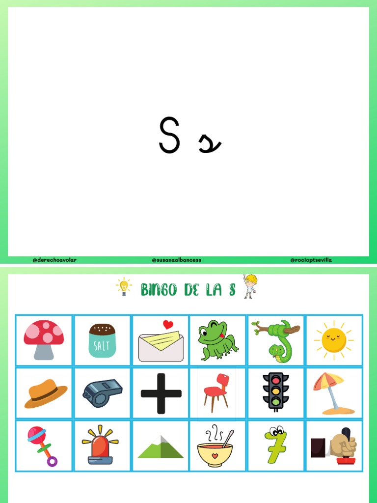 Palabras: sala, sosa, masa, oso, aso, sola, lisa, suela.