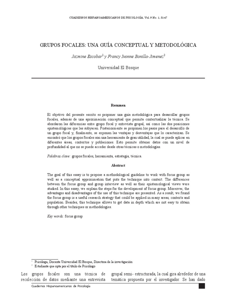 Palabras clave: grupos focales, herramienta, estrategia, técnica.