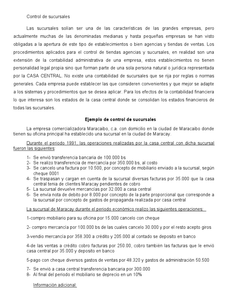 por la CASA CENTRAL. No existe una contabilidad de sucursales que se rija por reglas o normas