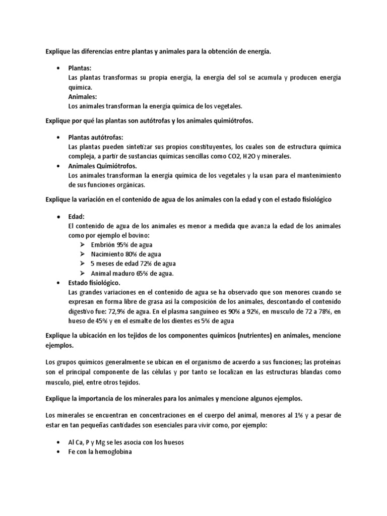 Mencione la diferencia en la composición química de plantas y animales.