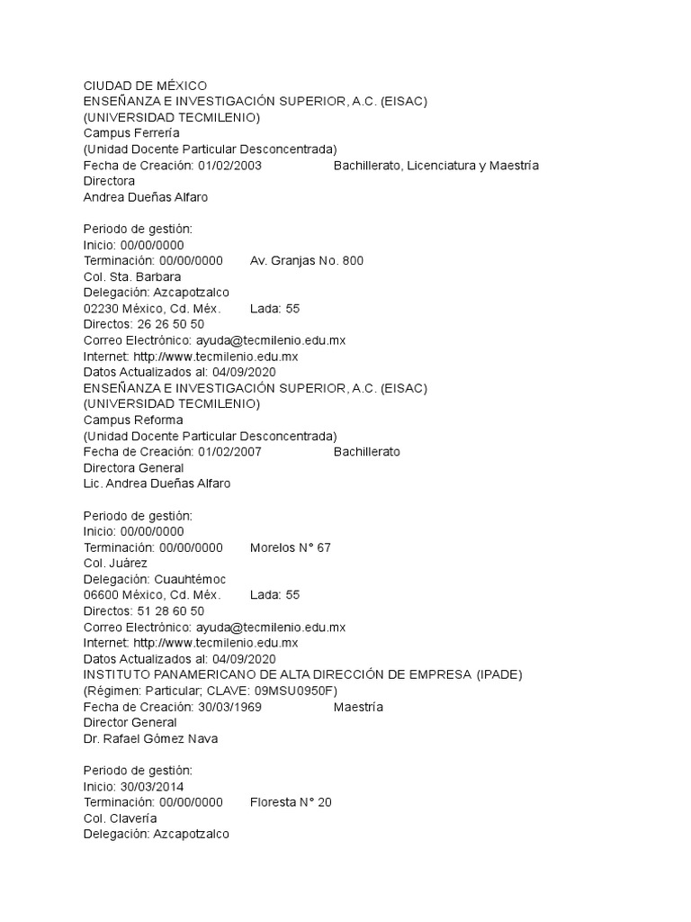 Fecha de Creación: 02/09/1966 Bachillerato, Licenciatura, Posgrado:
