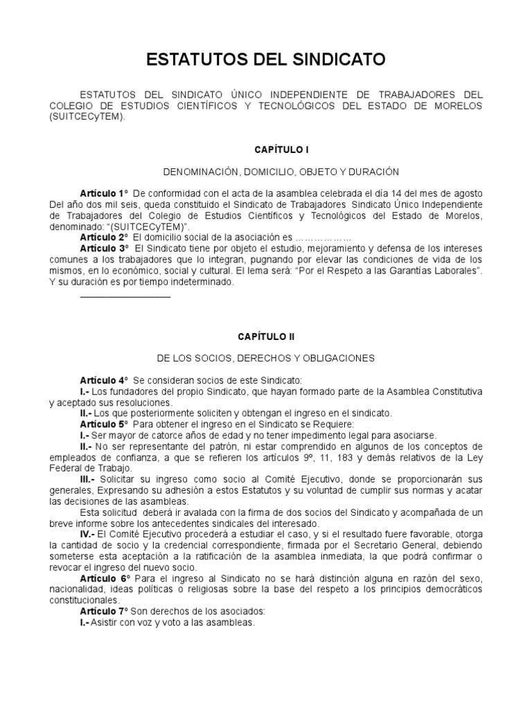 ESTATUTOS DEL SINDICATO ÚNICO INDEPENDIENTE DE TRABAJADORES DEL