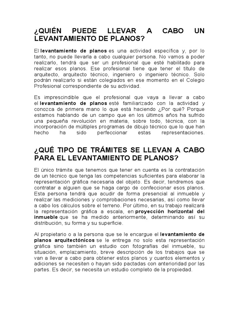otras palabras, el levantamiento de planos es la obtención de los planos, que