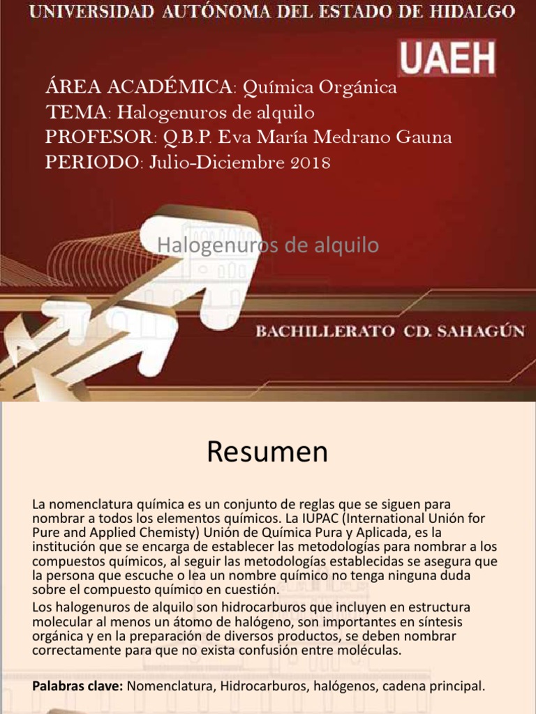 Palabras clave: Nomenclatura, Hidrocarburos, halógenos, cadena principal.