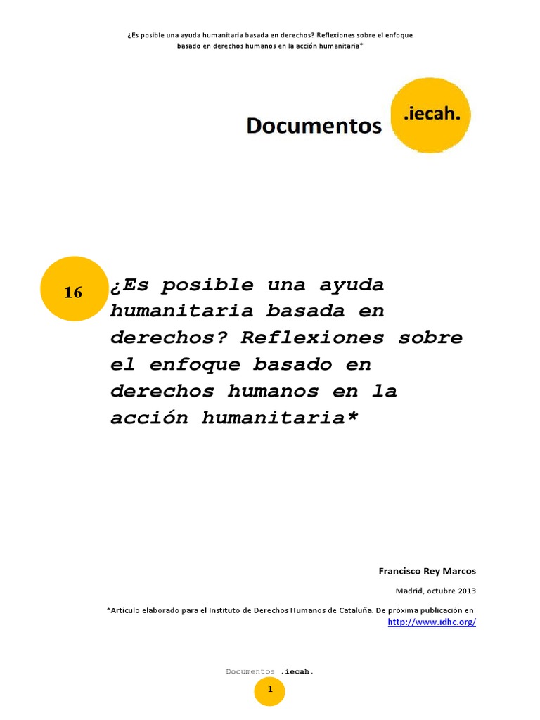 Basado Francisco Rey Marcos, “El enfoque basado en derechos humanos en la acción humanitaria. Reto de futuro” en