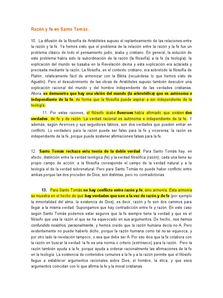 13. Para Santo Tomás no hay conflicto entre razón y fe, sino armonía. Esta armonía