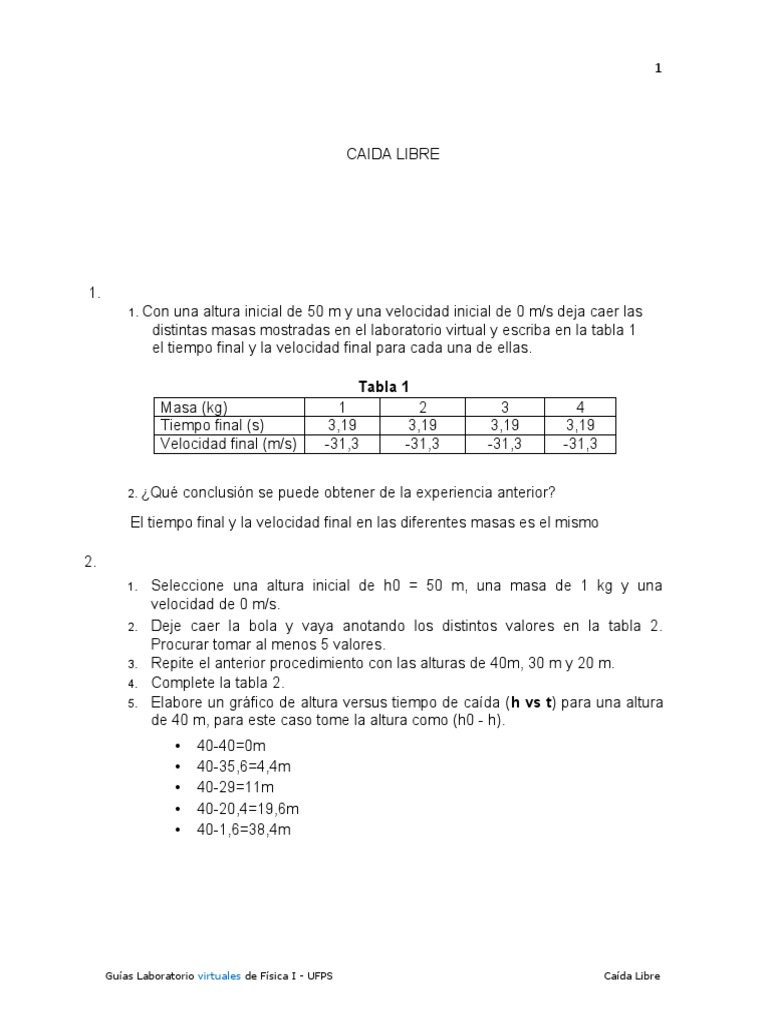 Guías Laboratorio virtuales de Física I - UFPS Caída Libre