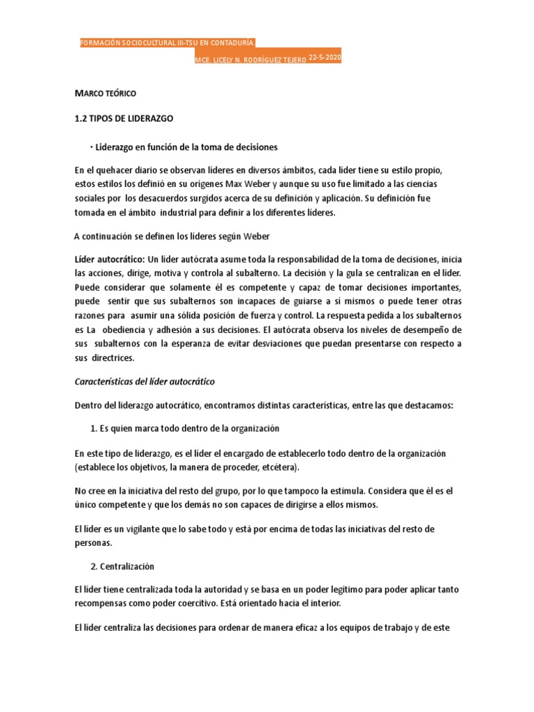 las acciones, dirige, motiva y controla al subalterno. La decisión y la gula se centralizan en el líder.
