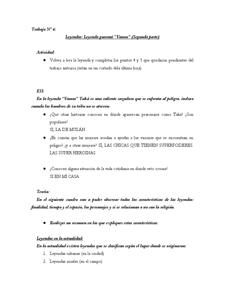 ● Volver a leer la leyenda y completar los puntos 4 y 5 que quedaron pendientes del