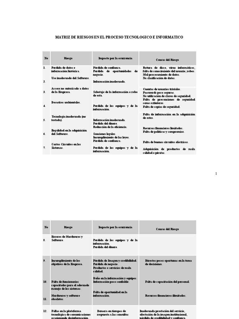 MATRIZ DE RIESGOS EN EL PROCESO TECNOLOGICO E INFORMATICO