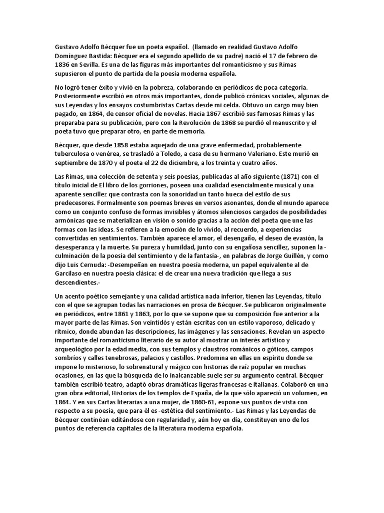 1836 en Sevilla. Es una de las figuras más importantes del romanticismo y sus Rimas