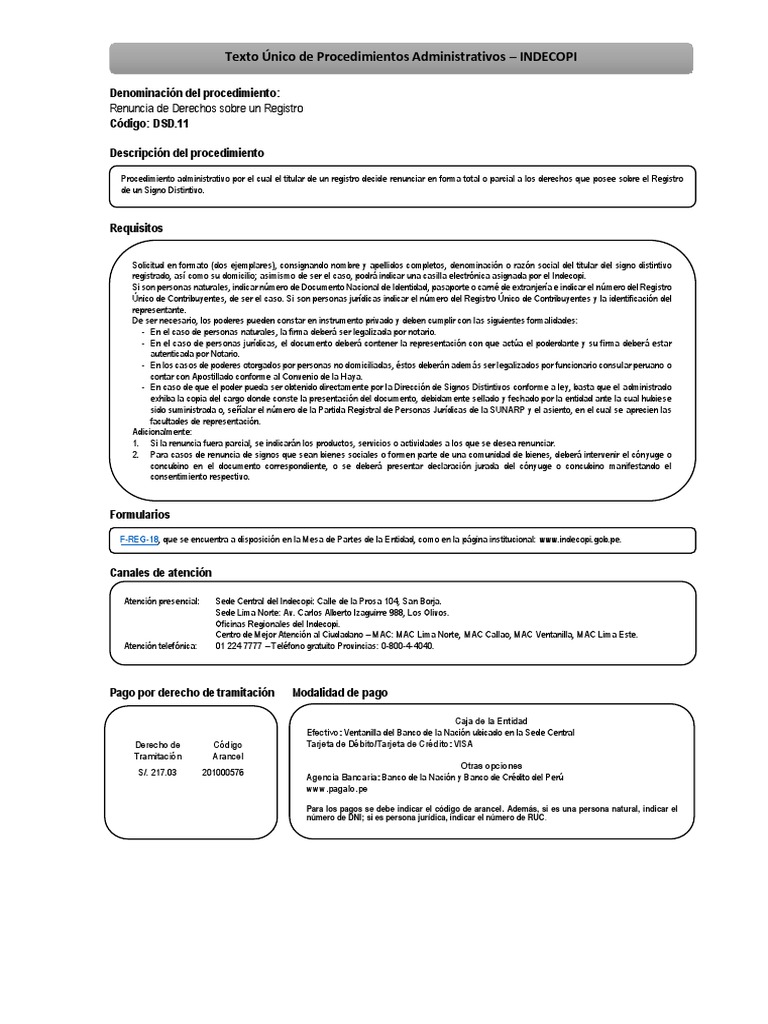 F-REG-18, que se encuentra a disposición en la Mesa de Partes de la Entidad, como en la página institucional: www.indecopi.gob.pe.