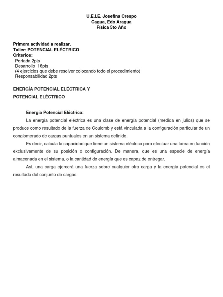 ENERGÍA POTENCIAL ELÉCTRICA Y