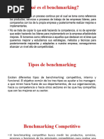 Existen diferentes tipos de benchmarking: competitivo, interno y funcional. El