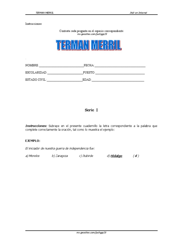 Instrucciones: Subraye en el presente cuadernillo la letra correspondiente a la palabra que