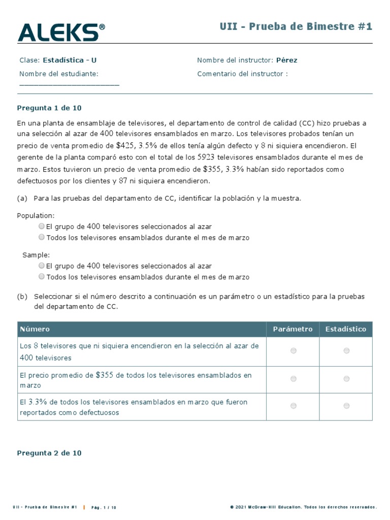 UII - Prueba de Bimestre #1 Pág. 1 / 10 © 2 0 2 1 M c G r a w - H i l l E d u c a t i o n . To d o s l o s d e r e c h o s r e s e r v a d o s .