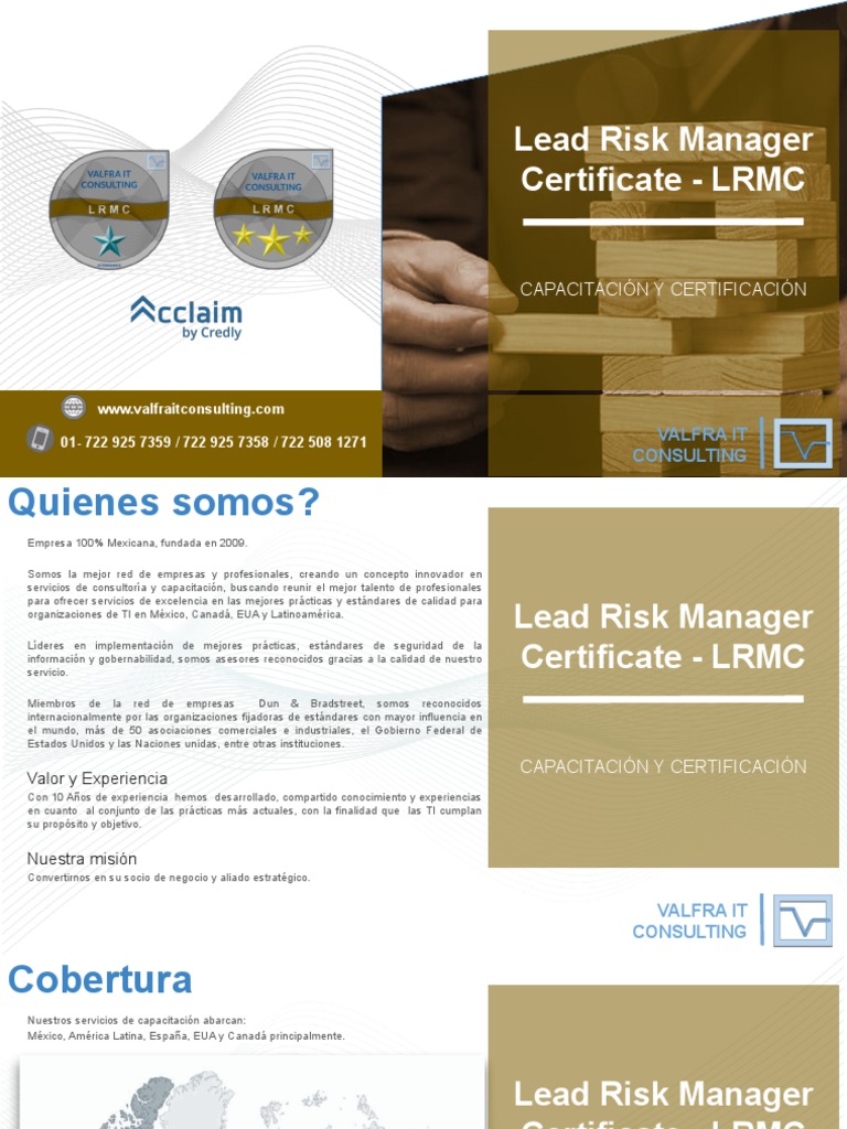 acreditación en el examen de certificación por VALFRA IT CONSULTING. Lead Risk Manager