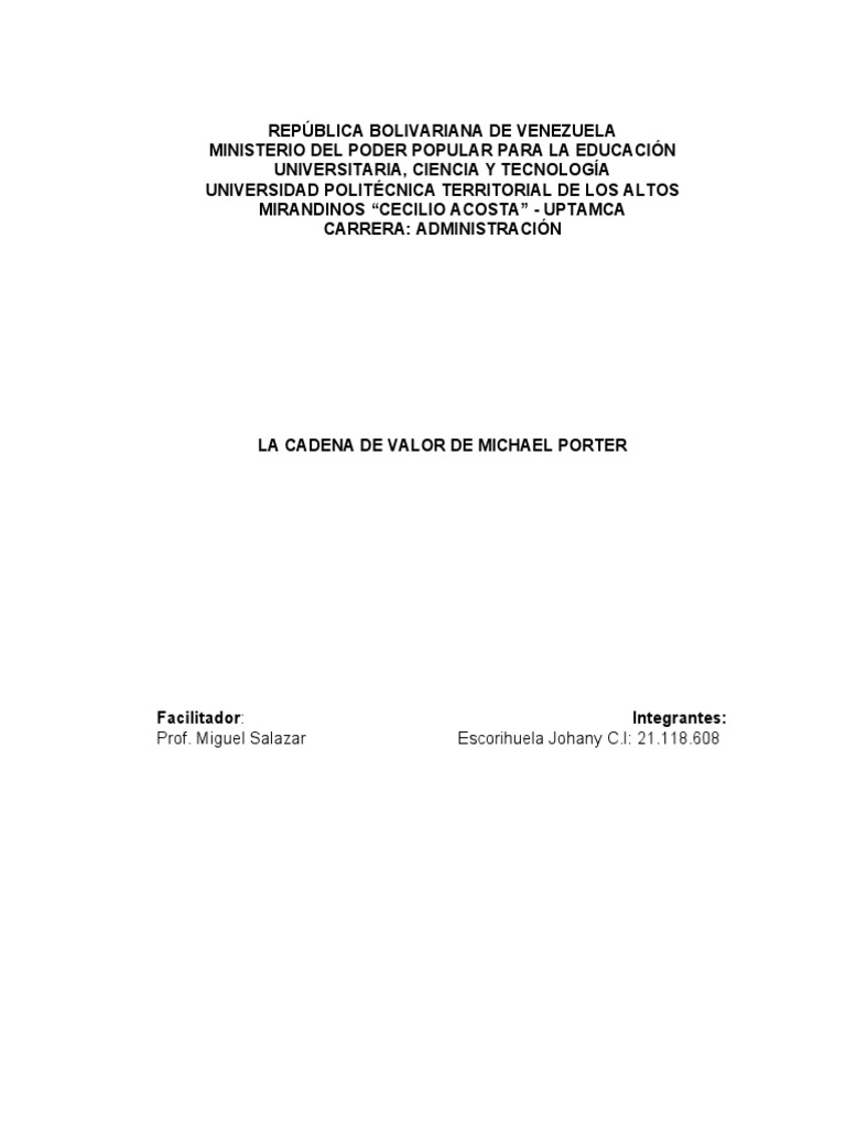 LA CADENA DE VALOR DE MICHAEL PORTER