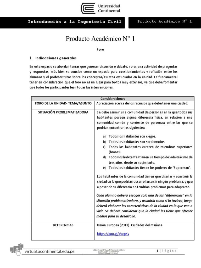 Introducción a la Ingeniería Civil Producto Académico N° 1