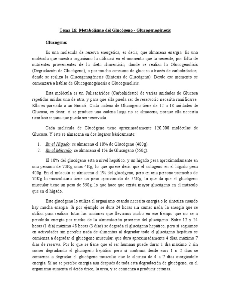 Tema 16: Metabolismo del Glucógeno - Glucogenogénesis